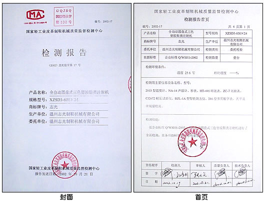 全自动圆盘式三色塑胶鞋类注射机--检测报告